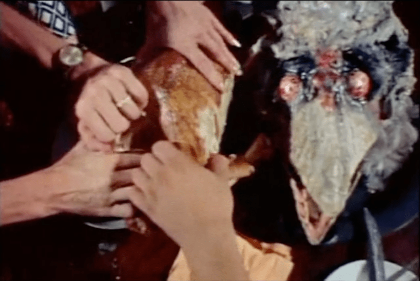 Yes. This movie is about drug-addled Herschel growing a giant, grotesque turkey head. And he’s still addicted to drugs. Except, as everybody knows, turkeys are also notorious blood drinkers, so now Turkerschel isn’t only addicted to drugs, but he’s also addicted to the blood of drug addicts and goes on a stuffing-infused killing spree.