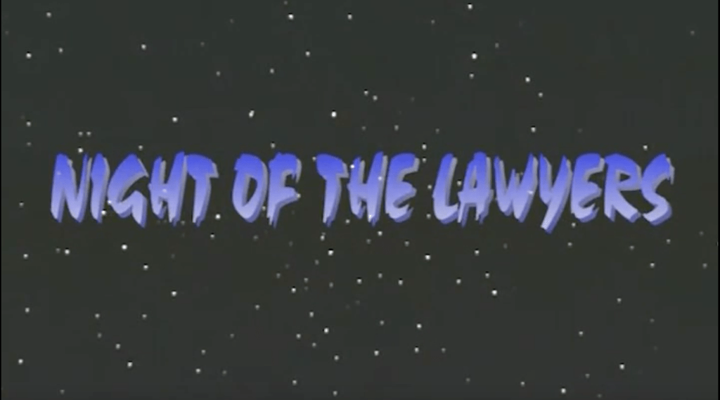 Night of the Lawyers is what would happen if you wanted to do a sci-fi spoof in the same vein as Airplane!, but only had enough money for three special effects, a bit of fake blood and a camera rental. It feels like something that was made in the 80’s, complements of the soundtrack and some interesting font choices