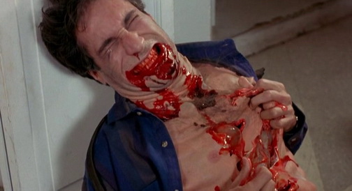 The blood and guts effects themselves end up faring a bit better. It’s clear they spent a little bit more effort here. But at the same time, it’s still painfully obvious at several points where the flesh ends and the make-up begins. It also doesn’t help that the blood is so bright red that it doesn’t look real at all.