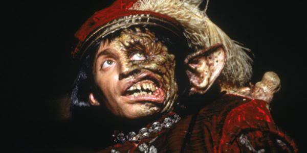 I found it absolutely fascinating to watch, though it did hurt my eyes a bit. However, you realize very quickly that that opening sets the tone for the entire film. The sets and costumes of the film are exciting and vibrant, especially once you get to the Freak Show. And since the movie was made in 93, the special effects are stunning and visceral. The freaks are all well designed and the effects and puppetry used to bring them to life are at once impressive and humorous.