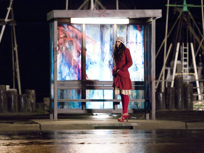 Walls are blue. Creepy-ass bus stops are blue: