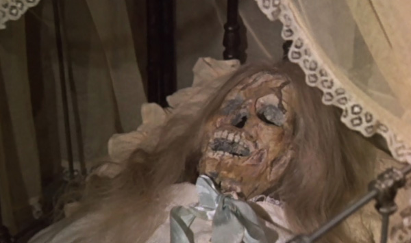 It’s clear almost immediately that she never got over her daughter’s tragic death years earlier. Hell, in the opening scene we learn that she keeps her daughter’s decomposing corpse in an oversized cradle in a nursery upstairs. With such obvious obsession, it’s no wonder that she invites mediums to her home to try to contact her daughter’s spirit and immediately becomes smitten with a girl who resembles Catherine. And her obsession to keep the girl with her just grows worse and worse as the story progresses.