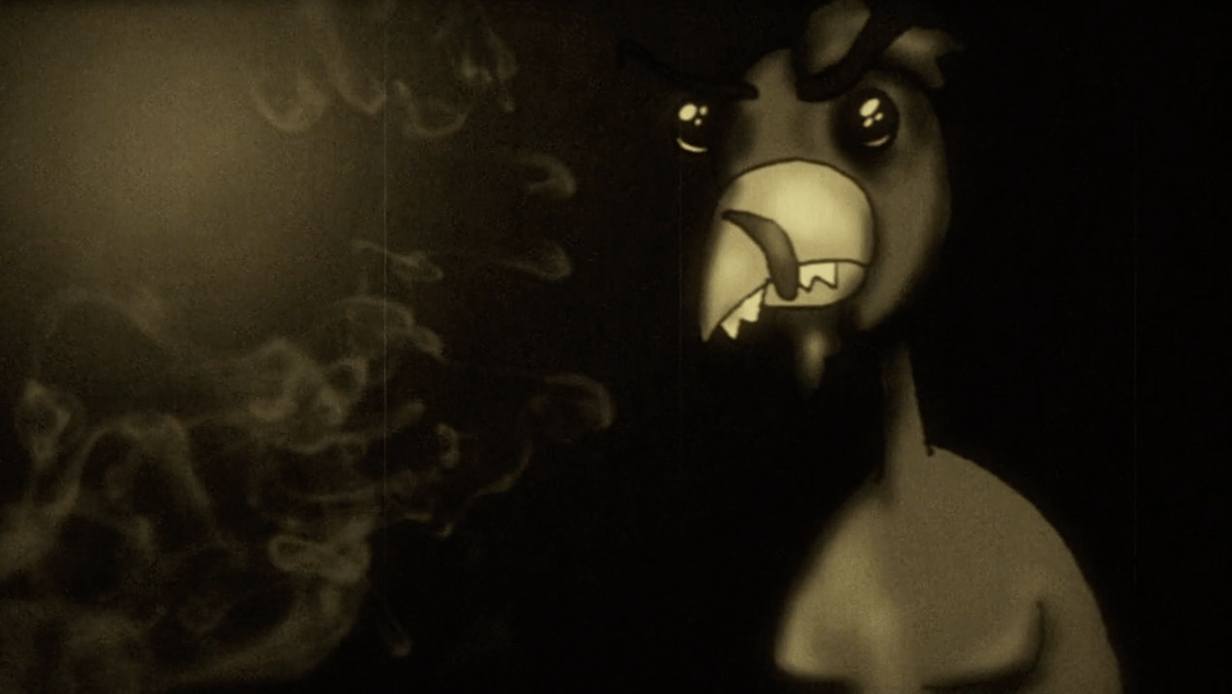 As for the story itself… Well, it’s a plot about a murderous turkey (named Turkey) who goes on a killing spree after being awakened from his 500-year long slumber because a dog peed on the mini-totem pole that had sealed him away. Deep the film ain’t. The plot is nothing more than a loosely tied together excuse to have the turkey hand-puppet do and say the most ridiculous things imaginable while he stalks and kills a bunch of kids. The film does go to the trouble of trying to explain its bizarre premise via an animated flashback sequence, but I guarantee most people will have forgotten about it by the time the movie is over. But that’s likely intentional. The filmmakers don’t want you to focus on the backstory, they want you to focus on the death scenes, like the one where the turkey is eaten whole and then blasts his way out of a dude’s stomach with a rifle.