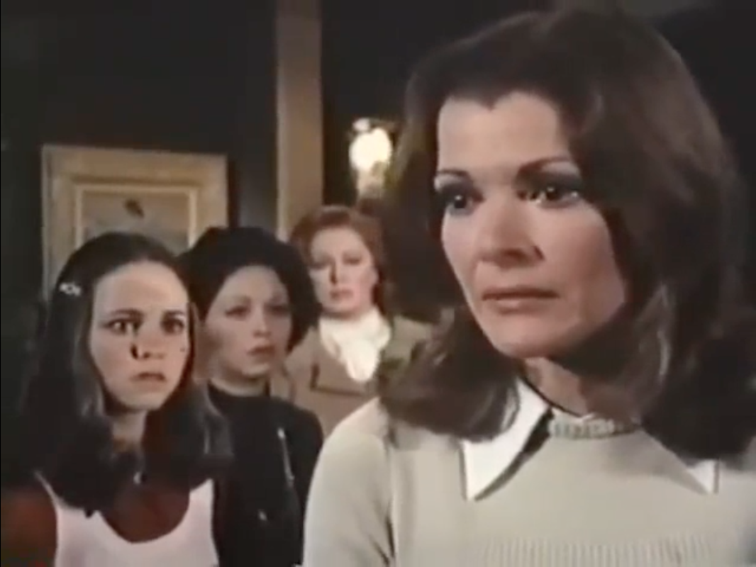 Really though, the horror elements almost seem like an afterthought. Because the movie’s main focus seems to be more centered around this highly dysfunctional family and their interwoven relationships. The father is uninterested in his children because he would have preferred sons, going to far as to give all his children masculine nicknames. The daughters, in turn, blame their father’s daliances for their mother’s suicide. The father disowned them and, despite being on his deathbed and calling all of them for help, still takes the time to ridicule each one of them before revealing his selfish reasons for calling them home. One can only imagine the level of emotional abuse that used to permeate from that household, so it’s really no wonder that the four women are either co-dependant, emotionally distant, emotionally stunted, have addiction issues, or suffer from some combination of the above. And none of that even touches on dad’s growing paranoia or stepmother Elizabeth’s past possible indiscretions and the resulting fallout. The movie almost spends more time on focusing on female neurosis than it does with worrying who the killer is. It’s almost like Aaron Spelling was trying to pitch a horror soap opera, but didn’t know how it would fly since Dark Shadows got canceled a year earlier.