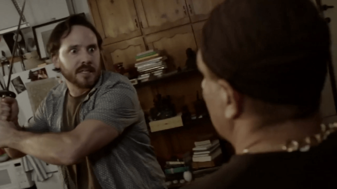 Thanks to the lack of time (due to the fundamental nature of a short) it’s hard to talk too much about the acting. Nothing is glaringly atrocious, and what little dialogue is there is crisp and to the point, giving the viewer ample information about the sword’s history, the characters and their relationship to one another. The one outlyer may be the Landlord, who’s threats and pounding on Royce’s door in an attempt to get his overdue rent feels more like a mob goon coming to break your knees as opposed to an actual landlord who’s looking to be paid, but hey, every horror film has it’s quirky side characters.