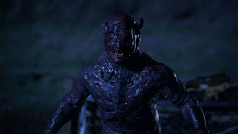 Several years later, the mans nephew, Derek, is trying to get in with a local fraternity and invites two of it’s members, their girlfriends and his best friend Sam, to his abusive step-father’s cabin for the weekend. While there, the group encounters a walking, talking werewolf who starts to knock them off one-by-one. Derek and Sam manage to escape with their lives and vow to confirm the identity of the werewolf and kill him.