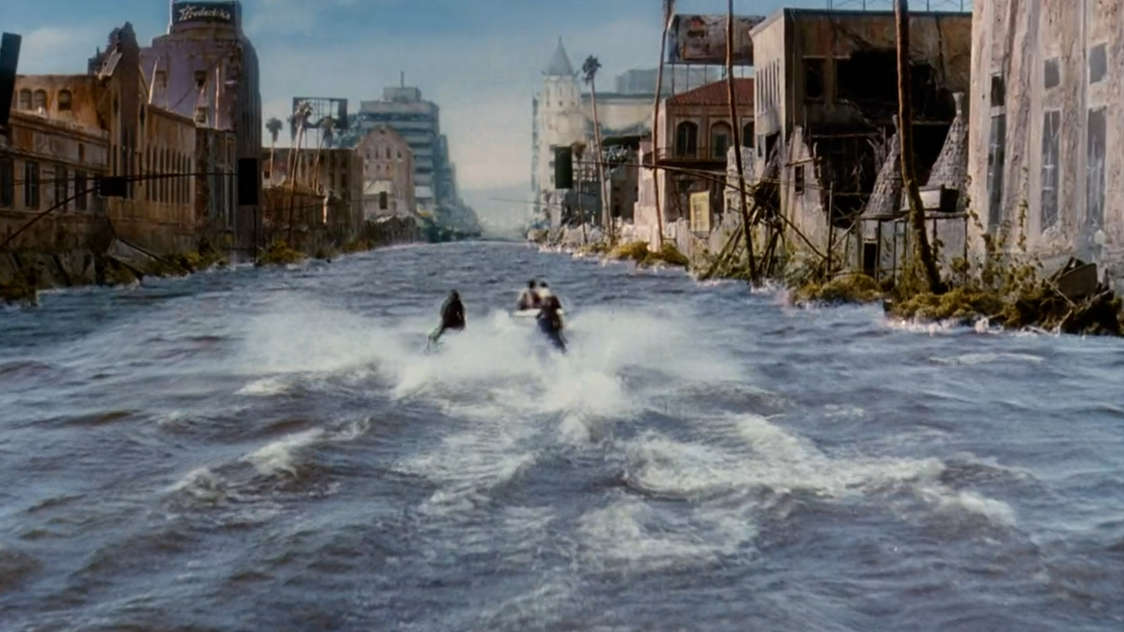 The other is that the movie looks very nice. The framing is good, the gang costumes are all diverse and matchy-matchy, colors pop…overall, it’s ain’t a bad looking film. Campy oftentimes, yes. But not necessarily bad….mostly. There are several instances involving the villain where they use some very early CGI that naturally looks pretty cheesy today, but thankfully it’s not too bad and it’s kept to a minimum. And while most of the costumes are okay, the brother’s final Gi uniforms are downright laughable (please note how they edited out all the sparkly shit in the posters and other production material). It looks like somebody in costuming got a new rhinestone machine, because they bedazzled the hell out of those outfits, which I’m sure was a major letdown to the gaming fans. On the plus side though, the backgrounds they used for the devastated city are absolutely excellent. I don’t know what person or group was responsible for those, but I hope they were paid well, cause those things were stunning.