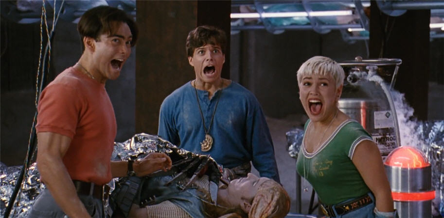 Unsurprisingly, it shouldn’t really be a shock that the acting on display matches the quality of the script: meh. I mean, you shouldn’t expect too much to begin with since this is a campy action movie aimed at teens. But even taking that into account, things aren’t great. You can tell most people were just there for a paycheck. Which is a bummer, because the movie stars people like Alyssa Milano and Robert Patrick, and I KNOW they can do better than what we got here. The real crime though is that the film also had Julia Nickson at their disposal, and for whatever bizarre reason they didn’t seem to have the foggiest idea of what to do with her. You get the feeling that she’s supposed to be this almost Mr. Miyagi-type guardian figure for the boys who helped protect and train them, and is thus really kind of important. But the story is so bungled that in the end she’s just kind of…there. So when she dies in a pitiful attempt by the film to help motivate the boys, nobody cares (including one of the boys!), because she was never given a chance to actually do anything worthy of being remembered or mourned for. And then the movie suddenly remembers she exists at the end, and has her pop up again for a hot second looking like the sun-baby in that Teletubbies show for toddlers. Like, seriously movie, WTF?