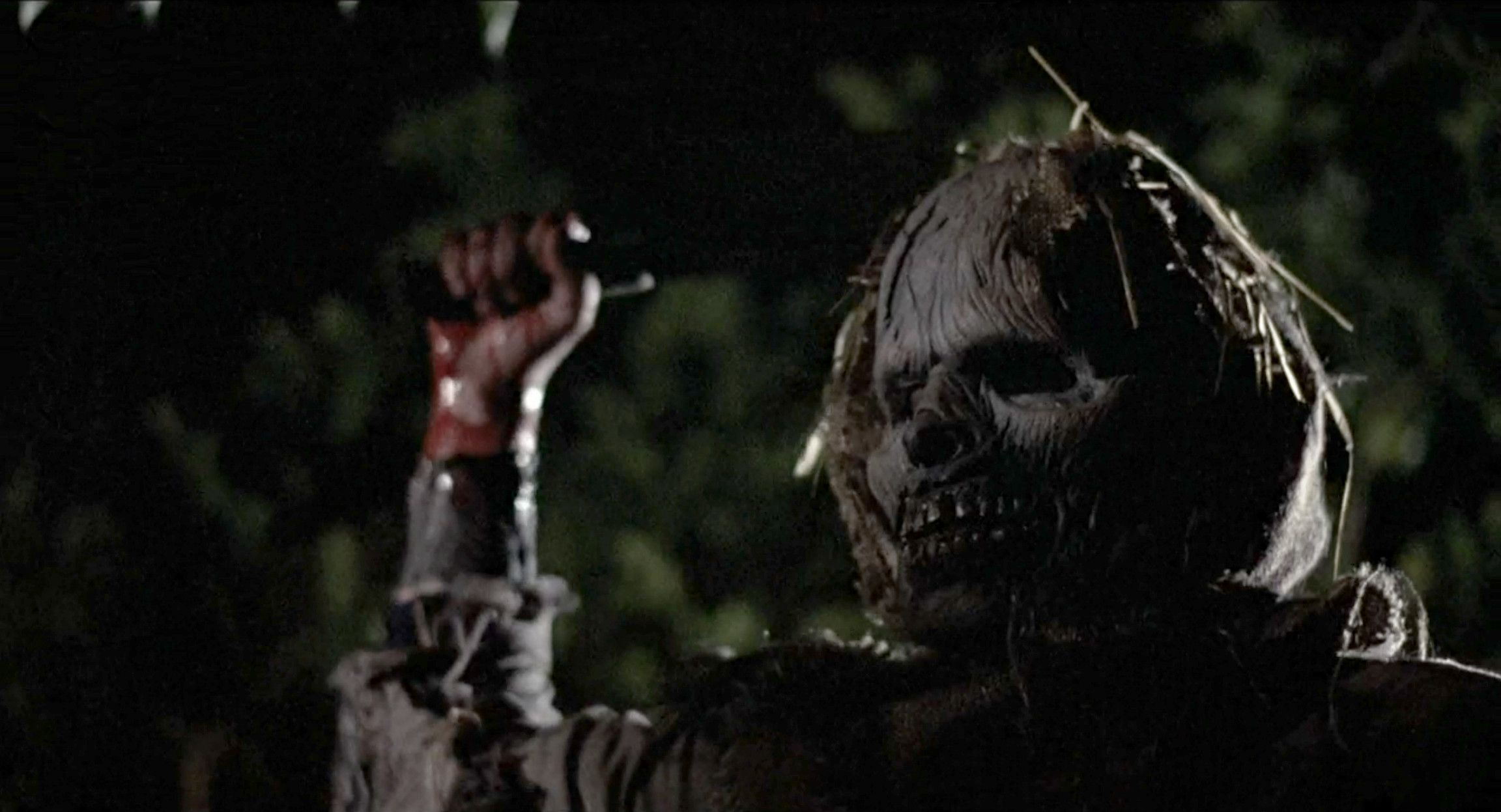 I’ve since read how some people had some trouble with the film’s bare-bones plot, but… Meh, that’s a generalized issue with slashers, and there was enough given or at least implied so that I wasn’t confused as to what was going on. Sure, I would have liked the start to have been a little faster and to have been told a little bit more about who the hell the scarecrow people are, because I KNOW there’s more of a story there, but I can live with what I got. So I thought that was fine.