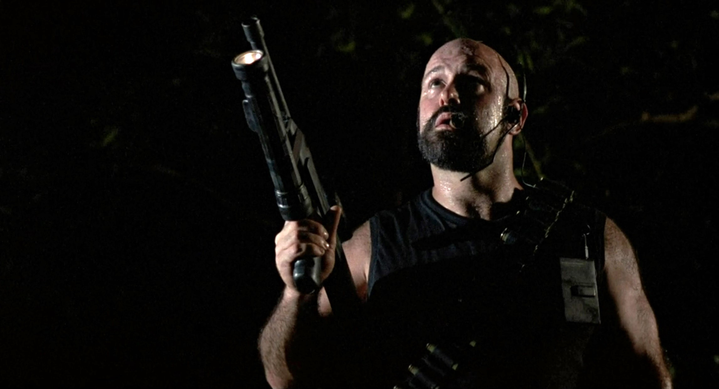 A group of five mercenaries are on their way to having an excellent night. They’ve just robbed Camp Pendleton and run off with over 3.5 million dollars, kidnapped a pilot and his daughter to fly them out of town, and are so far ahead of the authorities that they’re on their way to being home free assuming they can just make it past the Mexican border. But right on the eve of their success Bert, one of the mercenaries, decides to stab them in the back by stealing the money and parachuting after it. His former partners are pissed and chase after him, but quickly become confused. The farm they’ve landed in seems abandoned, but the electricity still seems to be working and the fields seem to be full of countless creepy scarecrows hoisted up on wooden crosses. It doesn’t take long for the remaining mercenaries to realize that something very fishy is going on when they can’t find Bert, but Bert instead finds them…only he appears to already be dead, with his organs gone and a bag’s worth of money shoved into his body. As more of them wind up missing or dead, the previous race against the authorities quickly becomes a race against whatever the hell it is that seems to be hunting them.