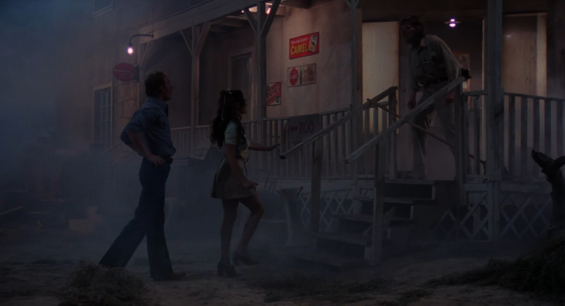 While I enjoy the movie for what it is, I think the film’s biggest downside, and possibly the reason why it tends to get overshadowed by TCM (and in some cases downright forgotten), is perhaps because it ends up being a little too much like its predecessor. It’s a shocking, sleazy, grime-y film that involves watching someone who’s absolutely insane chase around a bunch of randos who are just passing through, and most of the victims end up on the dinner menu. So, very similar plot, they just changed locations. That being said, it also doesn’t go quite as far as TCM either, so it might not feel like it “measures up”, so to speak. The biggest difference being that it lacks a lot of that realistic, raw intensity that makes TCM stand out so much, even today. Just about everything here is set on a sound-stage that seems to be perpetually covered in fog, so the film has a very dreamlike, almost nightmarish quality around it that takes out some of the “umph”. Many of the setups also feel a lot more “out there” compared to the previous film, so couple that with the absolute insanity of some of the plot points, and I can see how the movie may feel a bit too outlandish to produce the same kind of visceral impact for a lot of people. Despite the fact that it’s loosely based on a real case from Texas from the 1930s.